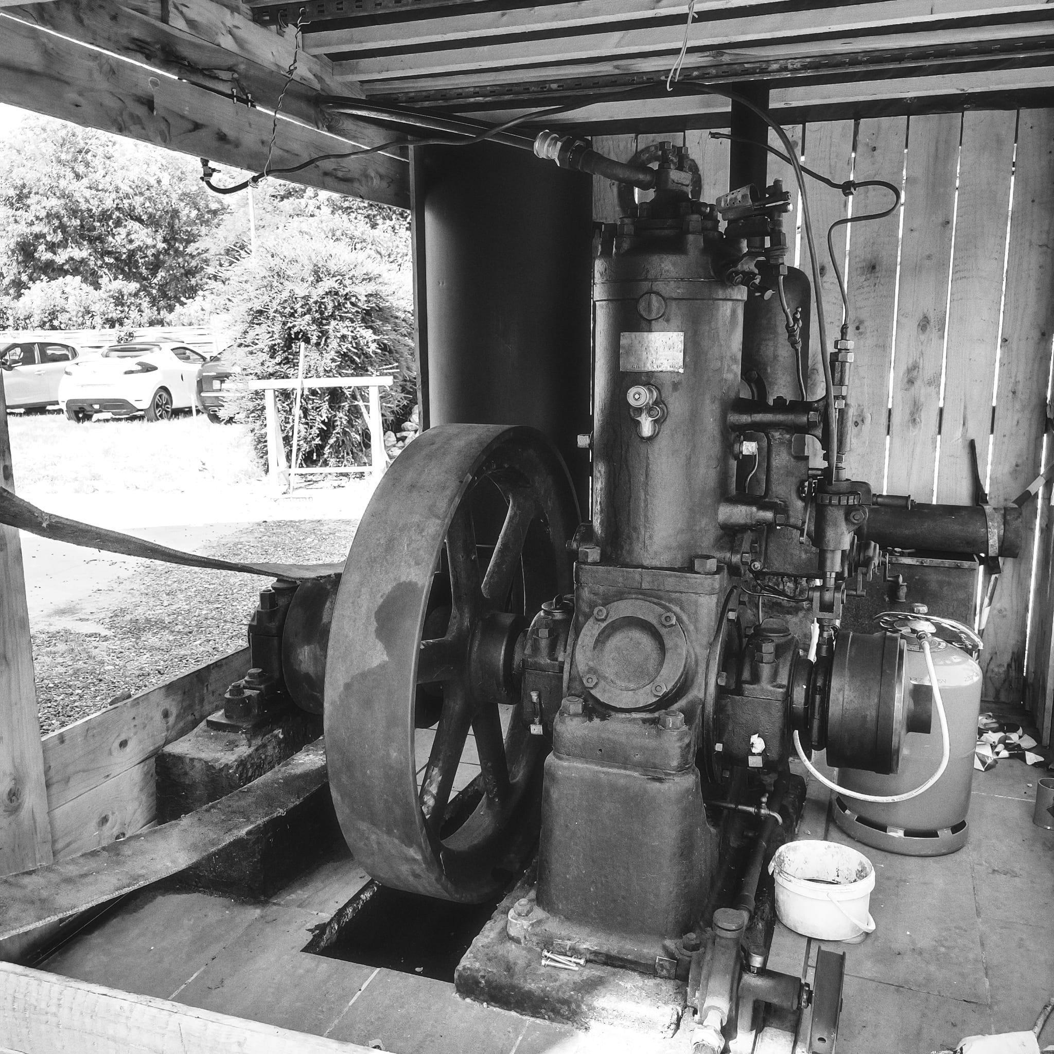 Moteur POYAUD à huile lourde de 1930 : Ce moteur historique vient d’être restauré. Il permettra au moulin de fonctionner même par temps calme, préservant ainsi son utilité et son charme intemporel.
