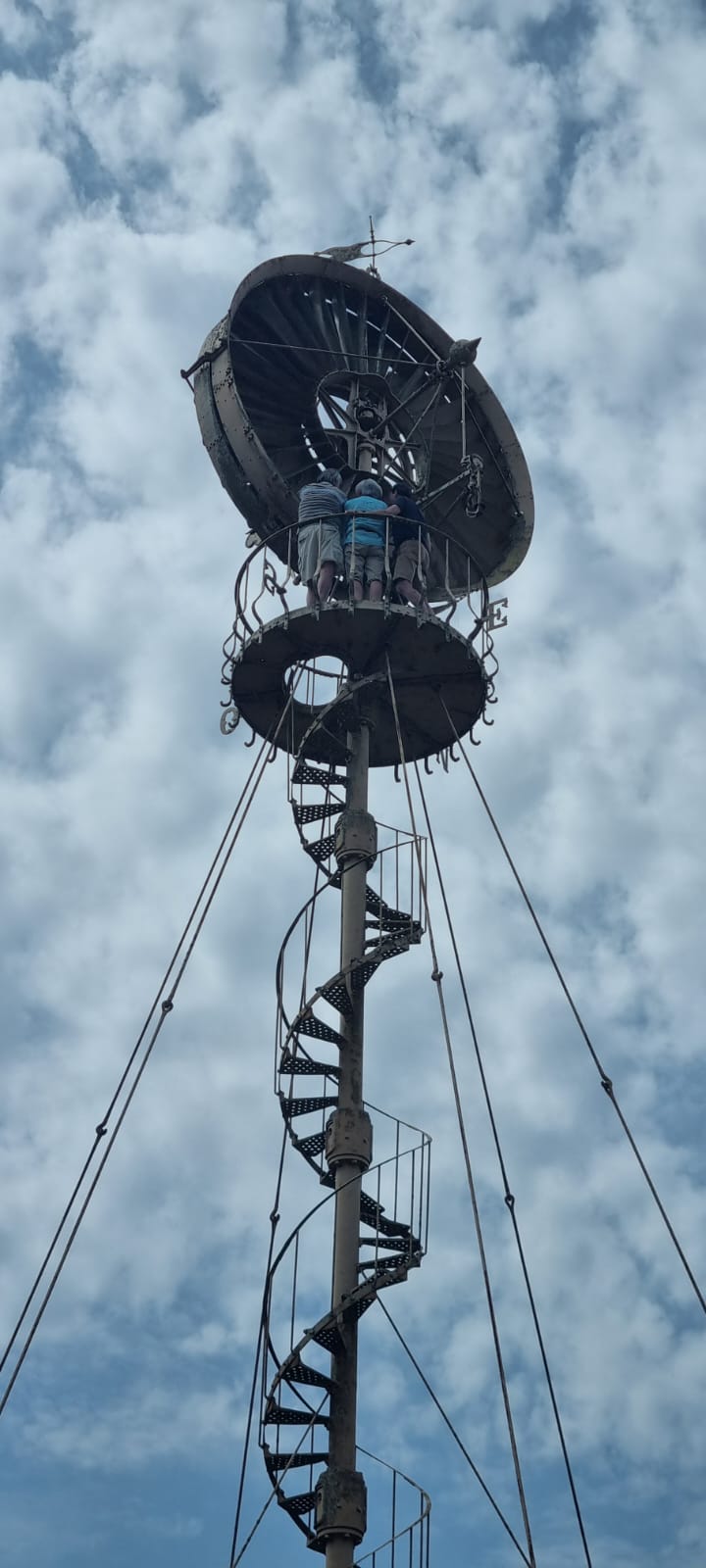 Aujourd’hui, l’éolienne ne fonctionne plus. Elle est complète, à l’exception du mécanisme d’orientation.