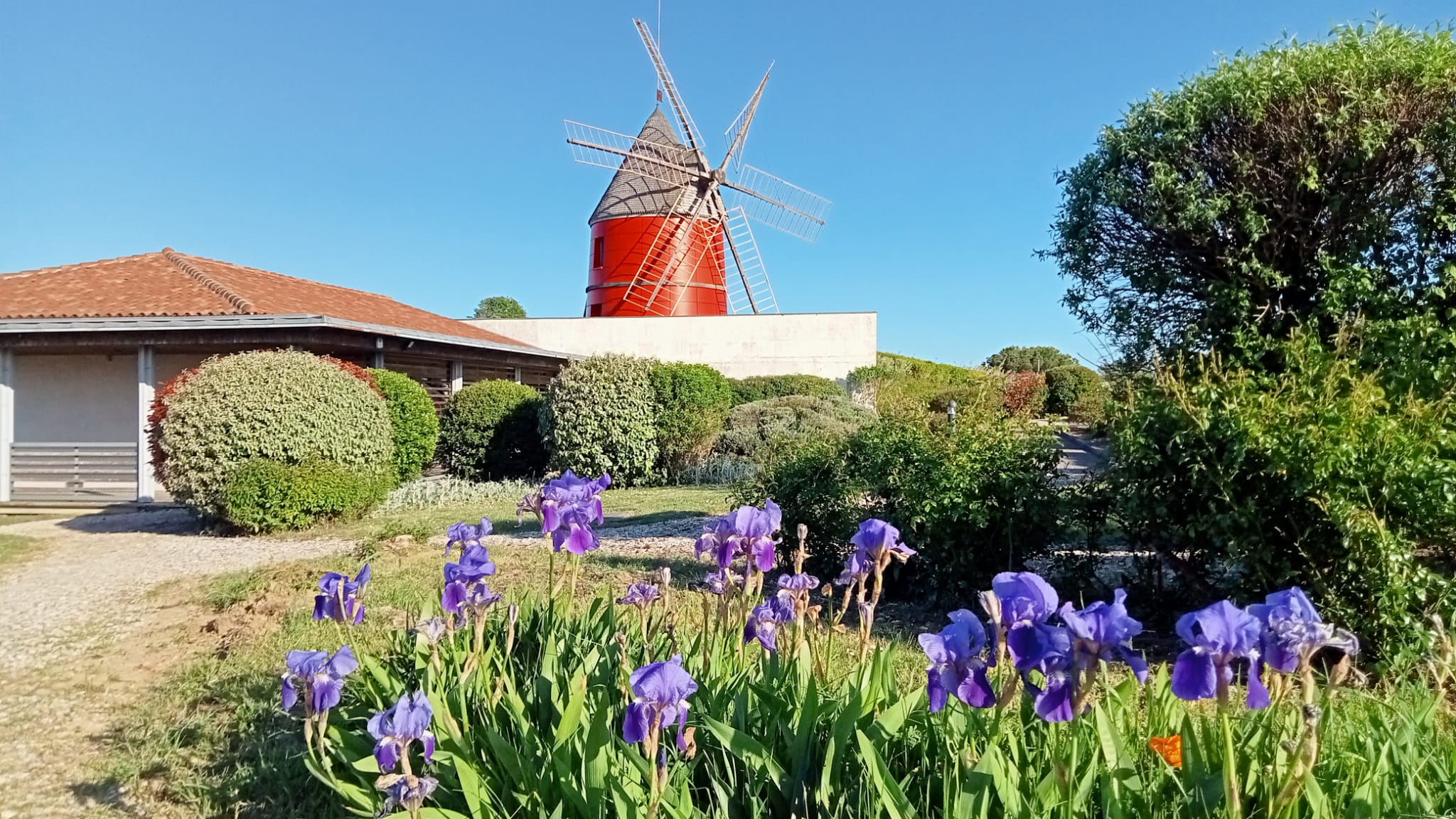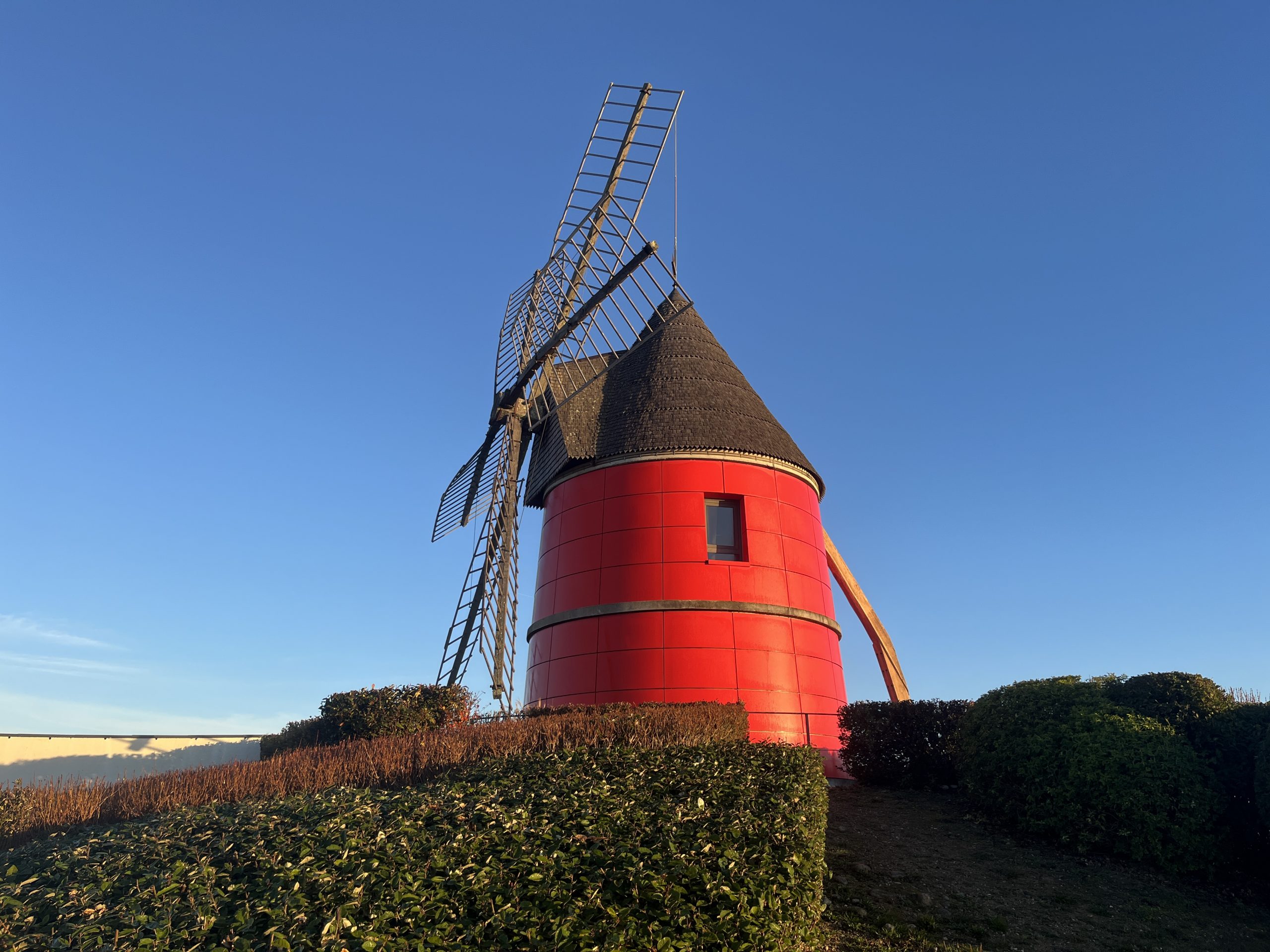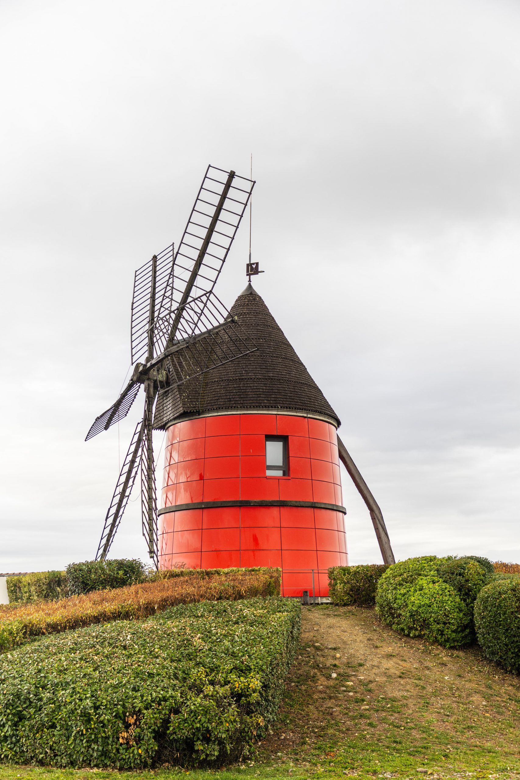 HAUTE-GARONNE (31) – La reconstitution d’un Moulin à 6 Ailes, en parements rouges, très visible et de loin.